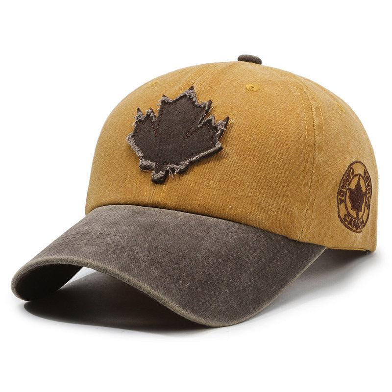 ম্যাপেল পাতার প্যাচ ধোয়া আউটডোর সুতির বেসবল ক্যাপ